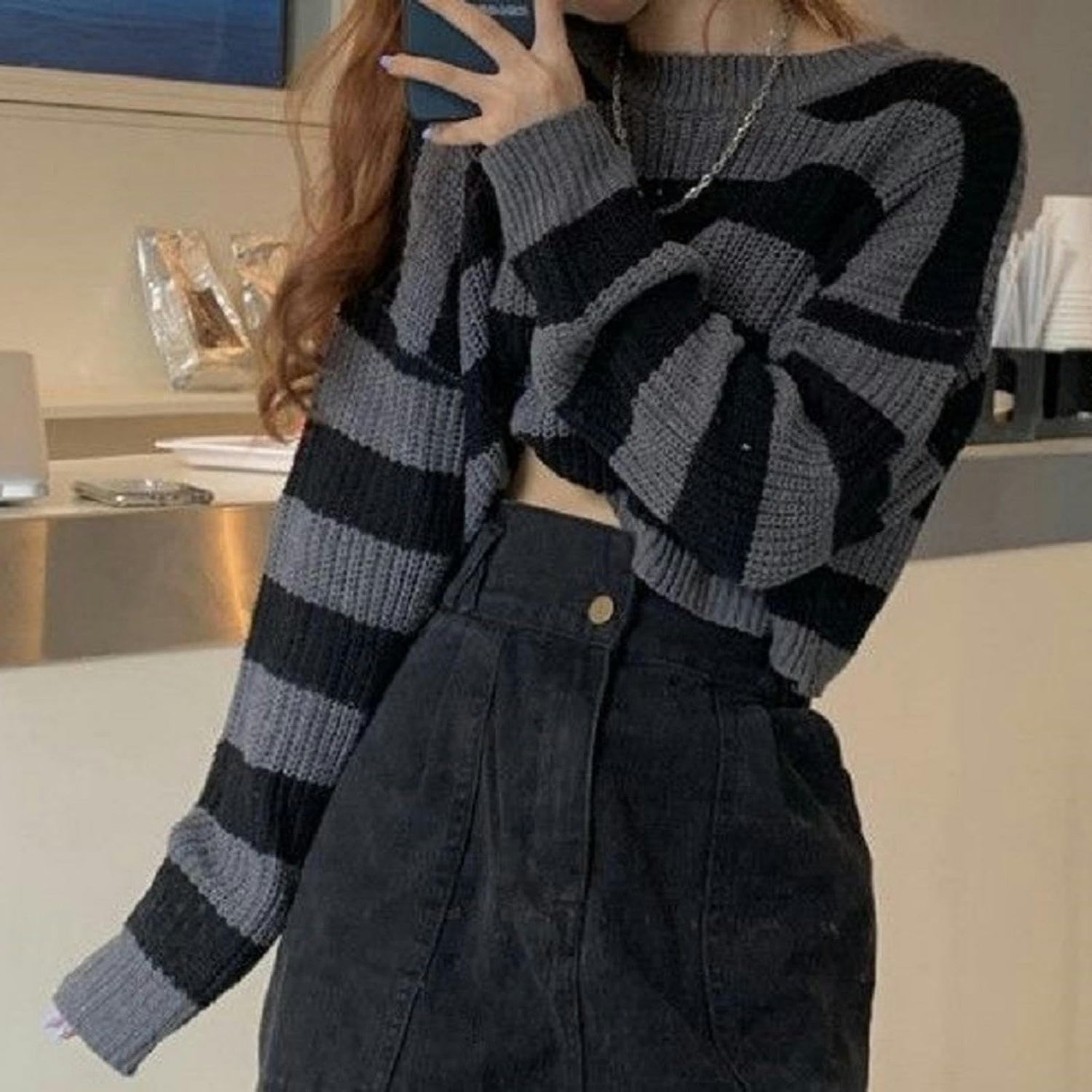 Step into effortless Korean-inspired fashion with Knit Nova, the striped cropped sweater that blends vintage charm with modern style. Designed with a soft, oversized knit and long sleeves, it keeps you cozy while delivering a relaxed, flattering fit. The O-neck design makes it perfect for layering or wearing solo, while the cropped length adds a playful, trendy touch to any outfit. Ideal for autumn, this pullover is a versatile wardrobe essential for casual streetwear or chic layered looks.
