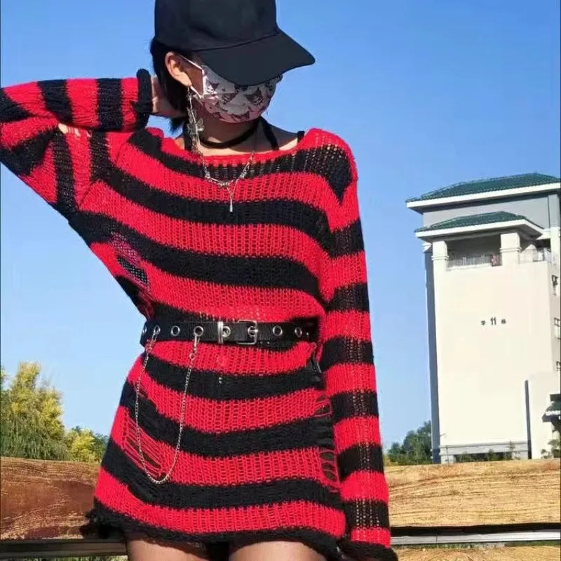 Make a bold statement with Shadow Stripe, the oversized pullover sweater that fuses punk edge with Harajuku cool. Designed with striped detailing and hollow-out accents, it delivers that effortlessly rebellious vibe — perfect for layering or wearing solo. Its soft knit fabric gives you a relaxed, slouchy fit that’s both comfortable and fashion-forward. Whether you’re hitting the streets or making a statement online, this is the piece that turns heads and sets trends.